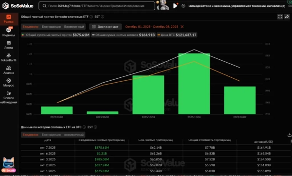 Entrées nettes de capitaux dans les ETF Bitcoin en octobre. Source : SoSoValue.