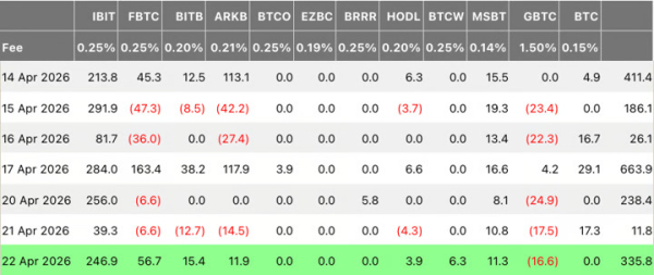 Les ETF Bitcoin au comptant ont enregistré 335,8 millions de dollars de transactions mercredi , marquant ainsi le septième jour consécutif de dynamique positive, selon Farside .
