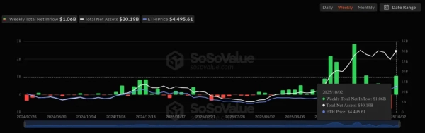 L'activité des investisseurs américains a coïncidé avec des flux constants vers les ETF Bitcoin au comptant. Du 29 septembre au 2 octobre, plus de 2,2 milliards de dollars ont été investis dans ces produits, soit le niveau le plus élevé depuis le milieu du mois dernier.