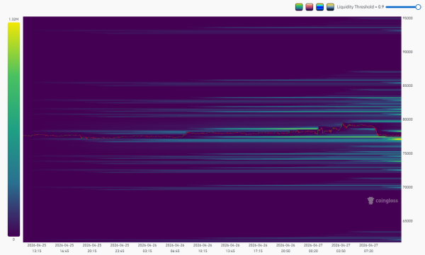 Les données de CoinGlass montrent une forte liquidité à la vente concentrée entre les niveaux de 78 000 $ et 80 000 $ dans deux groupes distincts.