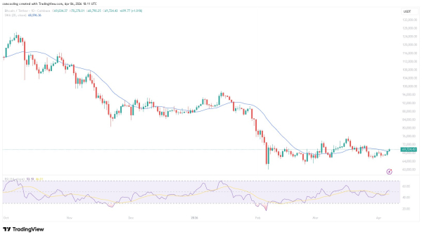 Le 10 avril, le Bitcoin pourrait tester la résistance à 75 000 $ ou le support à 62 000 $.