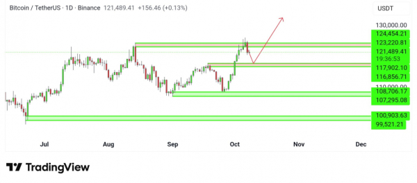 Le trader et entrepreneur en cryptomonnaies Michaël van de Poppe a souligné qu'atteindre un nouveau record historique incite traditionnellement les investisseurs à prendre leurs bénéfices. Après une légère correction, le cours se rapproche de sa zone d'intérêt personnelle, lui permettant d'envisager un achat en cas de baisse. Sur le graphique, l'analyste a souligné que la fourchette de 119 500 $ à 121 000 $ constituait un point d'entrée attractif.