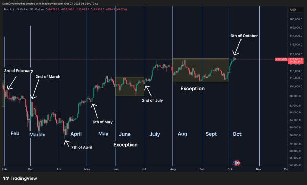 Le trader Daan Crypto Trades a noté qu'octobre s'annonçait comme un mois intéressant pour le Bitcoin. Le marché a bondi immédiatement après l'ouverture du nouveau chandelier mensuel – un phénomène certes nouveau, mais qui nécessite une surveillance attentive de son évolution.