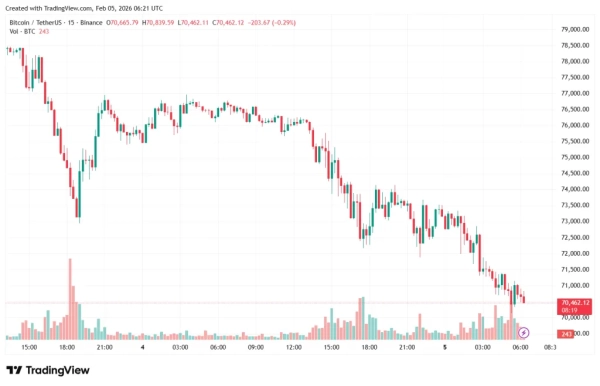 Le 5 février, le prix de la principale cryptomonnaie est tombé à 70 119 dollars, son niveau le plus bas depuis octobre 2024. Ethereum a suivi la même tendance, chutant à 2 079 dollars.