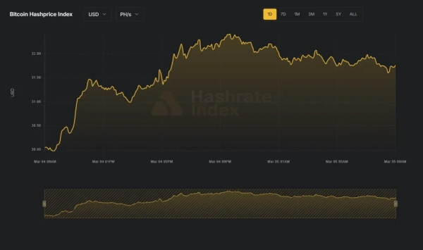 La pression s'accentue du côté des mineurs. L'indice du prix du hachage a chuté à 30 $ par TH/s en une journée. Il y a trois mois, il était à 39 $.