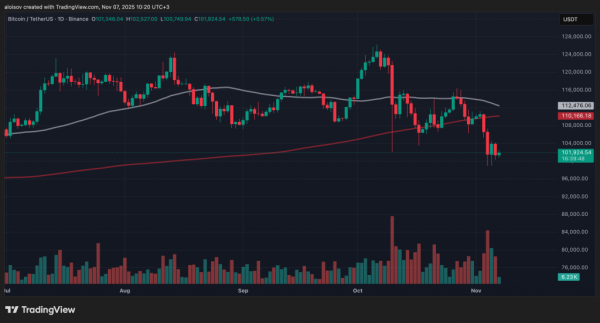 Le bitcoin a chuté à 100 300 dollars le 6 novembre, perdant 2,5 % en une journée, à l'instar des actions américaines, dans un contexte de données macroéconomiques décevantes. La principale cryptomonnaie s'échange actuellement autour de 101 924 dollars, suivant la tendance baissière des indices S&P 500 et Nasdaq 100.