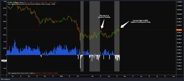 Les taux de financement sur les plateformes d'échange restent négatifs malgré la hausse continue du Bitcoin, un phénomène que les analystes considèrent comme inhabituel et potentiellement significatif.
