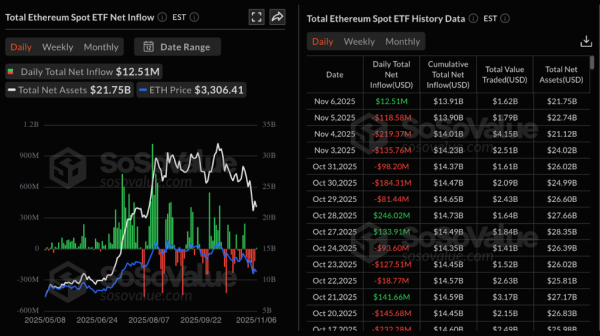 Dynamique des flux entrants et sortants des ETF Ethereum spot. Source : SoSoValue.