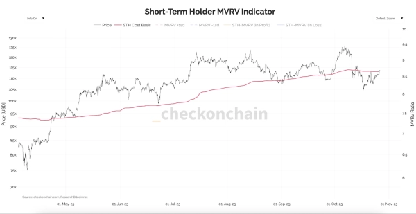 Indicateur MVRV pour les détenteurs à court terme. Source : Checkonchain
