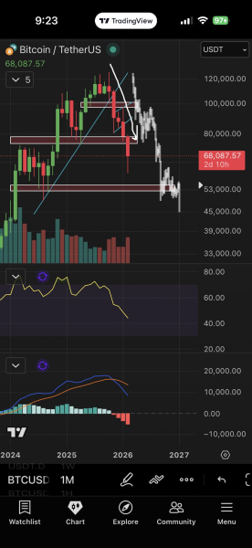 Le trader Roman a souligné les paramètres standards des baisses observées lors des précédents cycles baissiers. Selon Glassnode, le Bitcoin a perdu environ 80 % de son pic lors des cycles précédents. Au plus bas des 15 derniers mois, enregistré début février, la correction maximale du cours BTC /USD représentait environ 53 % du sommet historique d'octobre 2025. Roman a mis en garde contre toute conclusion hâtive : chaque cycle baissier s'est accompagné d'une baisse de près de 80 %, et les graphiques mensuels et hebdomadaires ne montrent pour l'instant aucun signe d'inversion.