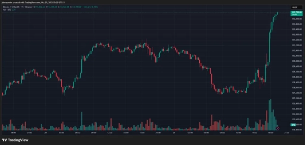 Le 21 octobre au soir, la cryptomonnaie phare a rapidement franchi la barre des 113 000 dollars après être passée sous la barre des 108 000 dollars le matin. Elle a gagné 2,2 % sur la journée.