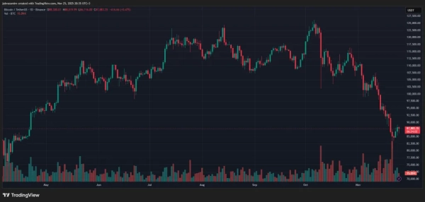 Au moment de la rédaction de cet article, le Bitcoin se négocie autour de 87 400 $ – soit environ 30 % en dessous de son plus haut historique.