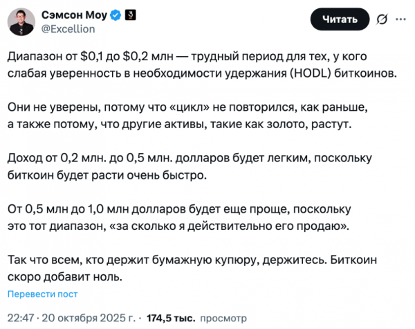 « Cette fourchette de 100 000 à 200 000 dollars est une période difficile pour quiconque n'est pas sûr de détenir du Bitcoin », a écrit le PDG de Jan3, Samson Mow, dans un article publié lundi sur X.