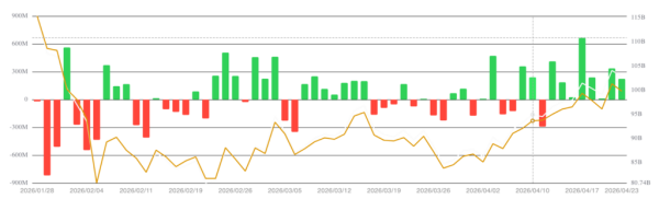 Il convient de noter que la tendance haussière actuelle, qui se transforme en une dynamique durable pour le Bitcoin, est liée à une hausse soutenue qui dure depuis plus de trois semaines, débutant le 29 mars, lorsque la cryptomonnaie a rebondi sur un support à 64 955 $. Le Bitcoin a repris sa progression après cette flambée, affichant un gain d'environ 23 %.