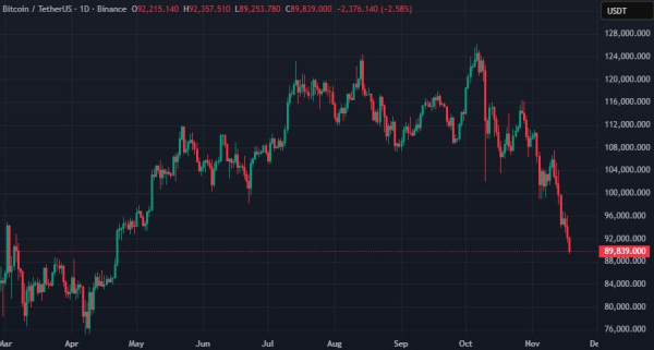 - Le 18 novembre, le prix du Bitcoin est tombé sous la barre des 90 000 dollars.