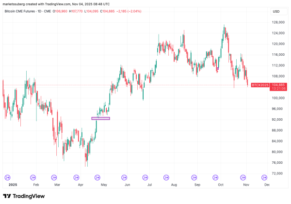 L'expert a attiré l'attention sur l'écart non comblé dans les contrats à terme sur le Chicago Mercantile Exchange (CME) aux alentours de 92 000 $, juste en dessous de l'ouverture annuelle de 2025.