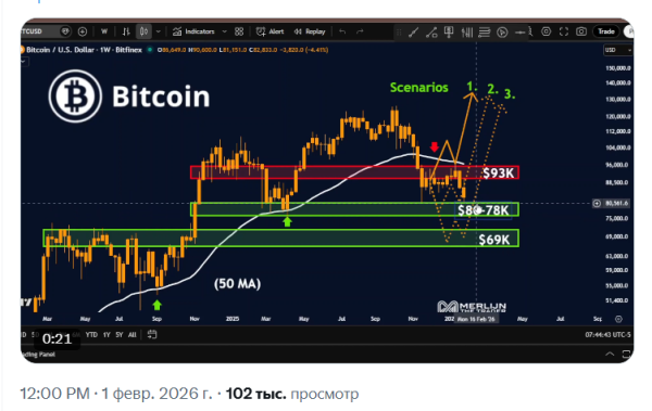 L'analyste Merlijn The Trader a identifié la fourchette actuelle comme la plus importante du cycle. La zone de support clé se situe entre 78 000 $ et 80 000 $. Si ce niveau cède, le pire scénario serait une chute à 69 000 $.
