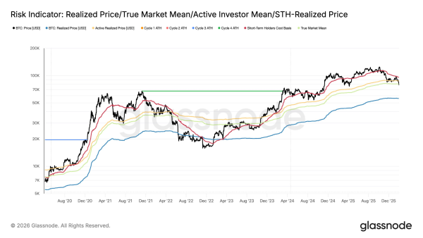 Les données de Glassnode confirment la gravité de la situation. Alors que le Bitcoin s'échange actuellement à 78 600 $, les principaux modèles de prix on-chain restent plus élevés :