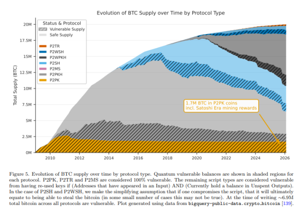 Les chercheurs de Google estiment qu'environ 1,7 million de bitcoins sont stockés sur des scripts P2PK et, en tenant compte de la réutilisation des adresses, le volume total de pièces vulnérables aux attaques quantiques pourrait atteindre 6,9 millions de BTC .