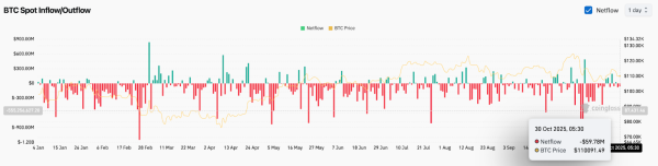 Cette décision intervient alors que les investisseurs institutionnels se montrent plus prudents. Les données du marché au comptant de Coinglass indiquent une sortie nette de 59,7 millions de dollars le 30 octobre, confirmant une baisse de liquidités observée depuis deux semaines. Les analystes notent que la combinaison de prises de bénéfices et d'incertitudes macroéconomiques a créé les conditions propices à un nouveau test du niveau de support technique clé proche de 109 000 dollars.