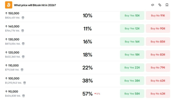 • Polymarket estime que la probabilité que le prix de la cryptomonnaie atteigne même 120 000 $ est faible.
