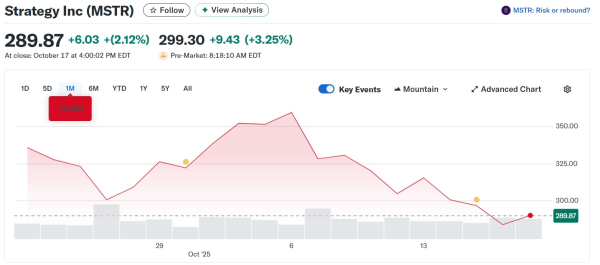 Au milieu du déclin du marché, les actions Strategy, qui se négocient sous les symboles MSTR, STRC, STRK, STRF et STRD, ont chuté d'environ 12 % au cours du mois dernier, selon Yahoo Finance.