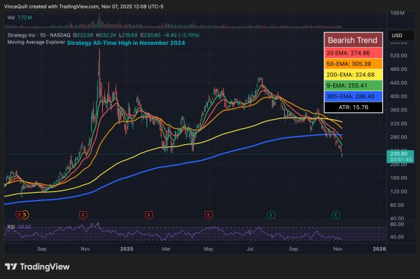 Strategy a annoncé un chiffre d'affaires de 2,8 milliards de dollars au troisième trimestre, contre 10 milliards au deuxième trimestre, et le cours de ses actions est en baisse depuis juillet.