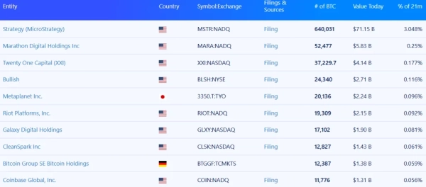 Au 20 octobre, l'entreprise détenait 640 031 BTC. La valeur totale des actifs s'élève à environ 71,15 milliards de dollars, avec un prix d'entrée moyen d'environ 74 010 dollars.