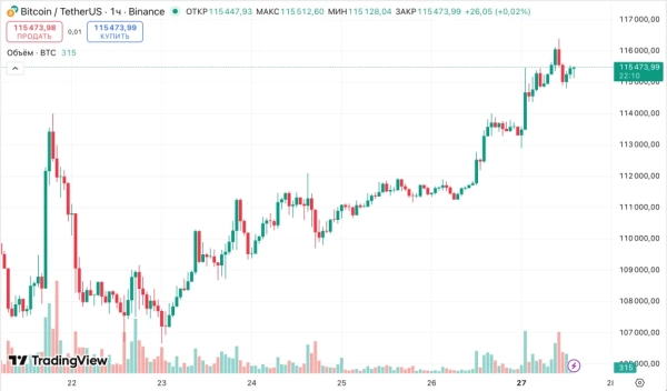 Graphique horaire du cours BTC/USDT de Binance. Source : TradingView.