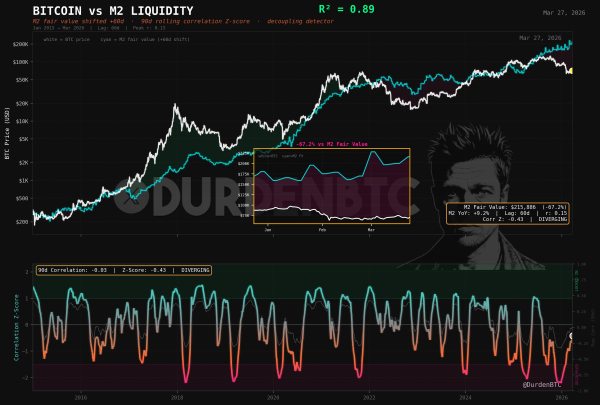 Un analyste de DurdenBTC a relevé l'écart anormal entre le prix du marché et le modèle de liquidité M2.