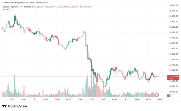 Au moment de la rédaction de cet article, la cryptomonnaie phare s'échange à 121 600 $. L'actif a chuté de 1,7 % en 24 heures, selon CoinGecko.