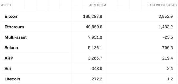 Les entrées nettes de capitaux dans les instruments négociés en bourse (ETI) basés sur le Bitcoin se sont élevées à 3,55 milliards de dollars cette semaine. Le total des actifs sous gestion a atteint 195,2 milliards de dollars. À titre de comparaison, ce même montant pour les produits adossés à l'argent s'élève à environ 40 milliards de dollars.