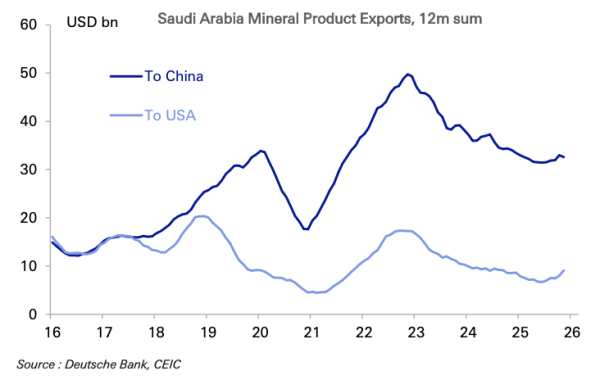 2. L'Arabie saoudite vend quatre fois plus de pétrole à la Chine qu'aux États-Unis.