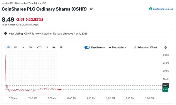 Le 1er avril, la société d'investissement CoinShares est entrée en bourse sur le Nasdaq grâce à une fusion de 1,2 milliard de dollars avec la SPAC Vine Hill Capital Investment Corp. Les actions de la société sont négociées sous le symbole boursier CSHR.