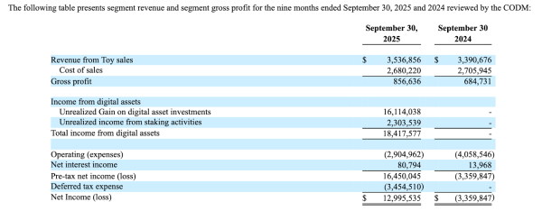 L'activité commerciale de la société, combinée aux frais d'exploitation et de vente, engendre une perte nette. Hors plus-values latentes sur les tokens $TRX et les plus-values latentes sur le staking de tokens $TRX , la société a enregistré une perte de plus de 5 millions de dollars l'an dernier.