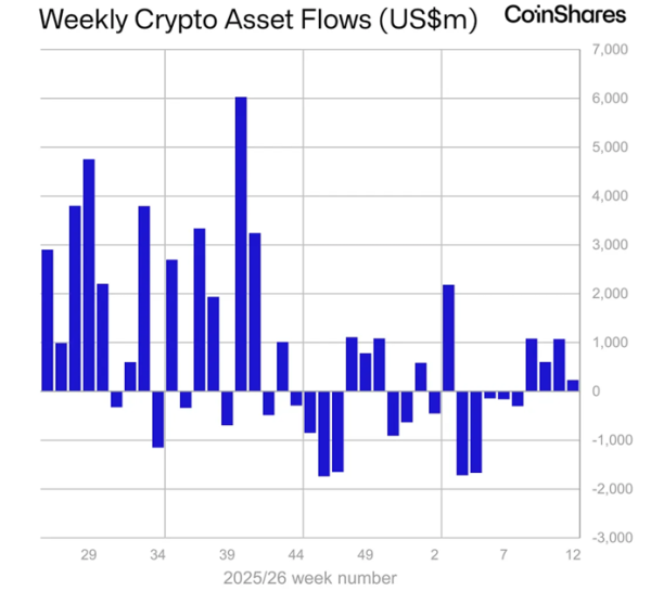 Du 14 au 20 mars, les entrées dans les produits négociés en bourse (ETP) basés sur les cryptomonnaies ont totalisé 230 millions de dollars, contre 1,06 milliard de dollars la semaine précédente, selon CoinShares.