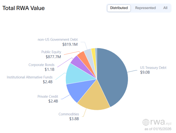 Valeur totale tokenisée des RWA par actif. Source : RWA.xyz