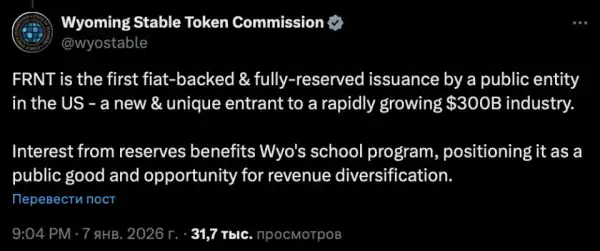 La Commission des stablecoins du Wyoming prévoit d'étendre activement l'utilisation du FRNT tout au long de l'année 2026. Les autorités visent à attirer de nouveaux partenaires pour la revente du jeton, à intégrer le FRNT dans la quasi-totalité des agences gouvernementales de l'État et à collaborer avec les entités publiques intéressées par l'émission de leurs propres stablecoins.