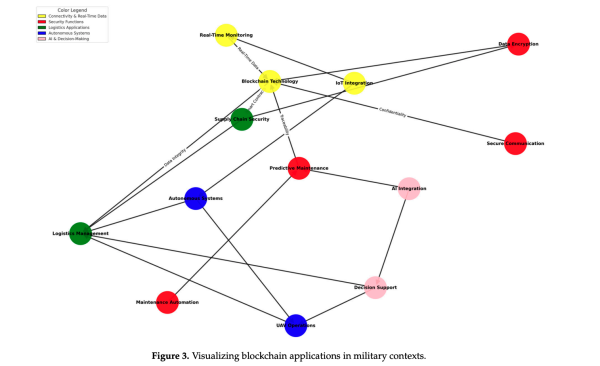 Une étude de Technologies (2025) montre que la blockchain « renforce les opérations militaires grâce à des communications sécurisées, une logistique immuable et une authentification résistante aux attaques quantiques ». Les chercheurs soulignent que les registres distribués renforcent la protection des systèmes de commandement et des chaînes d'approvisionnement contre les cyberattaques et les menaces physiques.
