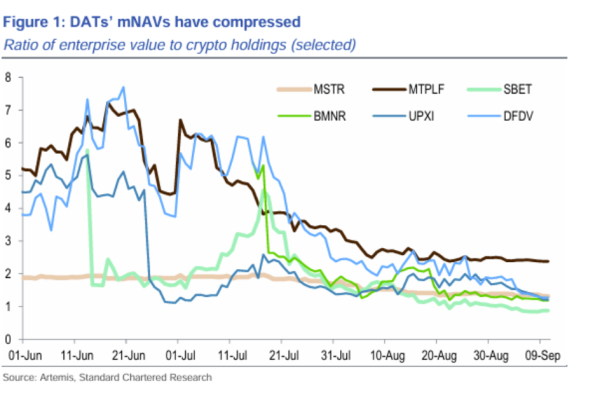 Standard Chartered a précédemment cité DeFi Development parmi ceux qui ont enregistré des baisses de mNAV en dessous du seuil dans le cadre de « l'adaptation du secteur aux nouvelles réalités du marché ».