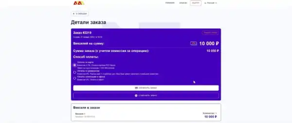 Sur la page suivante, vérifiez les détails de votre commande et choisissez votre mode de paiement : virement bancaire, carte bancaire ou espèces dans les agences A7 Finance. Aucuns frais ne sont appliqués aux virements bancaires ni aux paiements en espèces, mais une commission de 0,5 % s’applique aux paiements par carte.